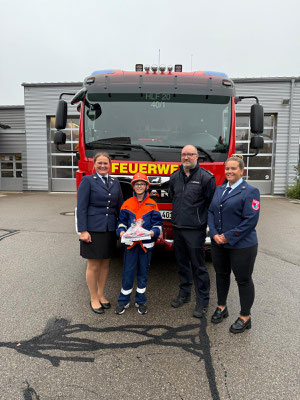 Mit unserem Ritual, durch den Spalier der Kinderfeuerwehr ging es ins HLF, wo sich die beiden in ihre Jugendfeuerwehruniform in Schale geschmissen haben. Auf der anderen Seite stiegen die beiden aus und wurden der Jugendfeuerwehr mit ihrem Jugendwart Tobias Odermann übergeben. Anschließend wurde zusammen mit der Jugendfeuerwehr gegrillt.