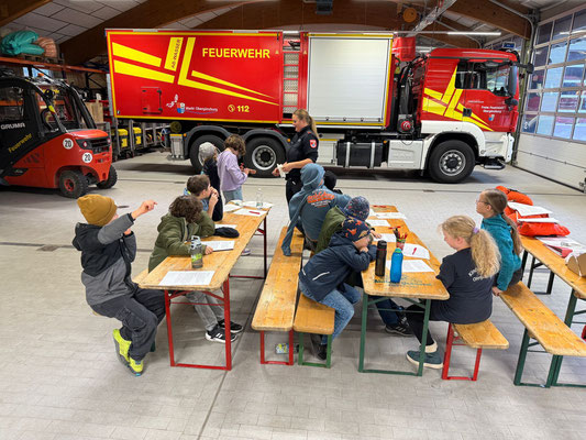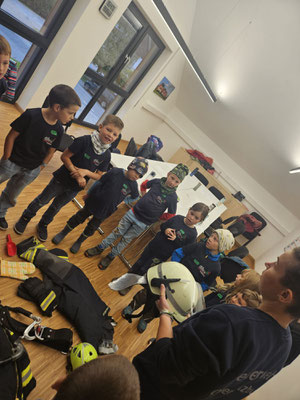 Am 6.10.25 begann die Vorbereitung auf unser Abzeichen, das Kinderflämmchen. Je nach Altersstufe wurden dieses Mal die Themen rund um das Thema „Erste Hilfe“ in Angriff genommen. Vom richtigen Anlegen eines Pflasters bei der jüngsten Gruppe über die stabile Seitenlage bis hin zum Druckverband wurde im Feuerwehrhaus kräftig geübt. Auch die weiteren Aufgaben, die bei der Prüfung abgefragt werden, wurden schon in Angriff genommen. Mit viel Spaß waren die Kinder unter anderem beim Löschen dabei. Bei der nächsten Gruppenstunde wird weiter fleißig trainiert...