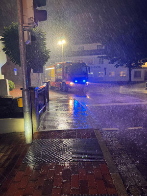 Ein kurzer Starkregenschauer führte am Donnerstag um 20:20 Uhr dazu, dass die Günz im Bereich der Baustelle im Bereich Kemptener Straße und Marktplatz über die Ufer trat.