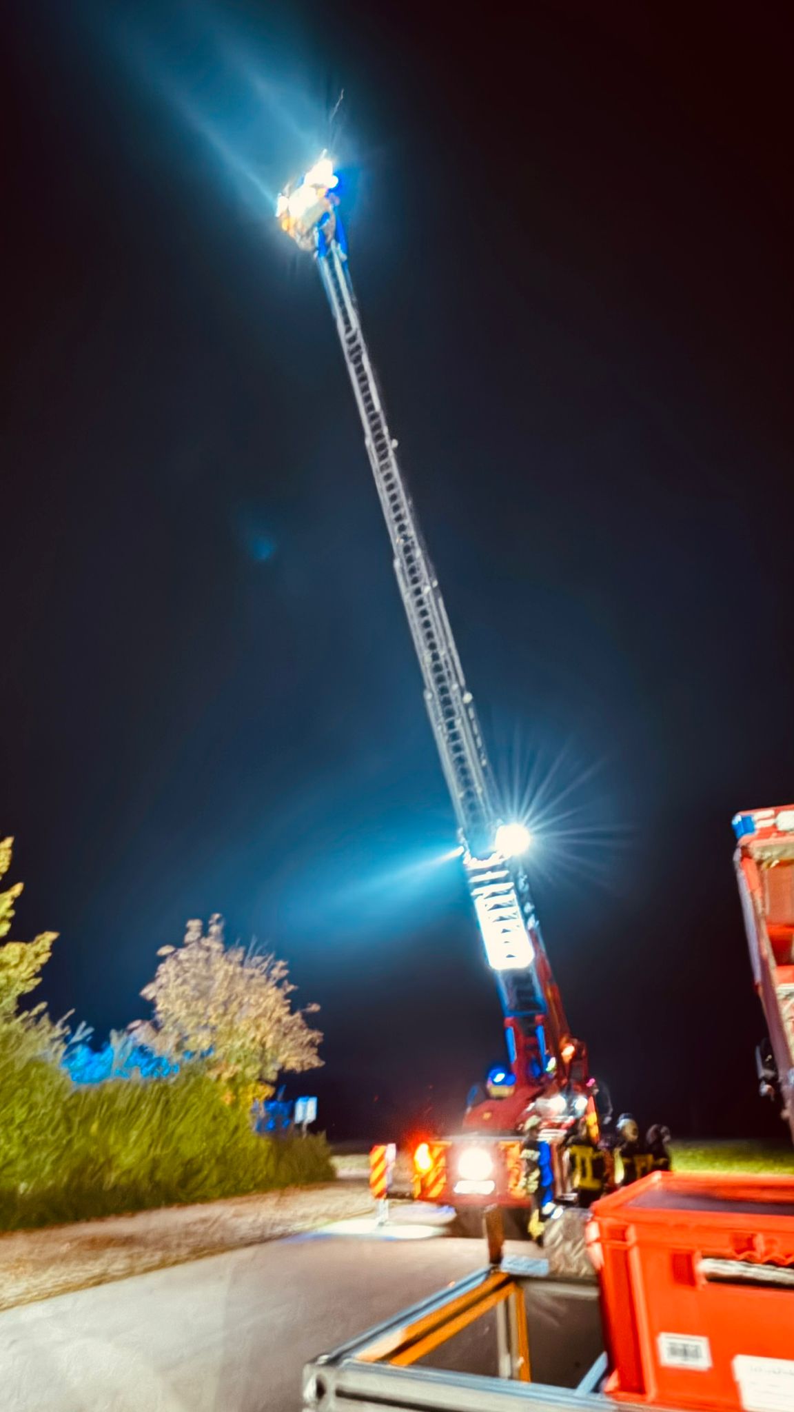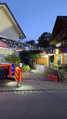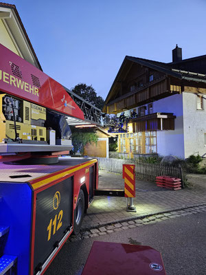 Der Patient wurde mit der Drehleiter durch ein Fenster des Anwesens gerettet und dem Rettungsdienst übergeben. Nach ca. 30 Minuten war der Einsatz für uns beendet.