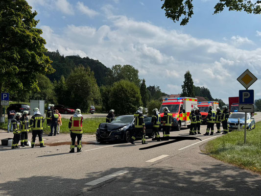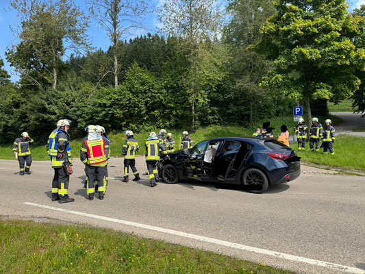 Auf der Staatsstraße von Obergünzburg nach Ronsberg ereignete sich am Freitagnachmittag ein Auffahrunfall mit drei Verletzten. Weil aus einem Fahrzeug Rauch entwich wurden wir um 14:32 Uhr durch die ILS Allgäu alarmiert.