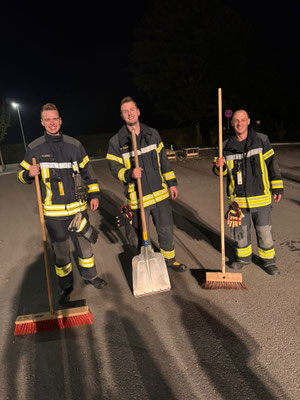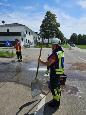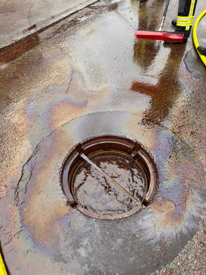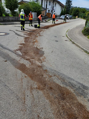 Da bei beiden Einsatzstellen die Gefahr bestand, dass die Betriebsmittel in die Kanalisation gelangen unterstützen wir beim Abstreuen der Spur und der anschließenden Reinigung.