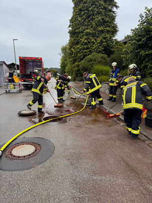 In der Baustelle der Hochwasserfreilegung wird die Günz aktuell durch große Rohre geleitet. Weil die Rohre verlegt waren und der Abfluss nicht gewährleistet war, verständigten Anwohner die Feuerwehr und den Bauhof. Parallel dazu rückte das Bauunternehmen in Eigeninitiative an. 💪🏻