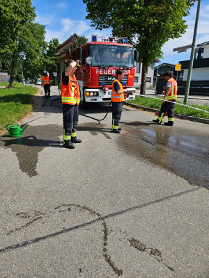 Am gestrigen Nachmittag wurde die Feuerwehr um 13:47 Uhr zu einer Technischen Hilfeleistung (THL) alarmiert. Grund war eine rund 500 Meter lange Dieselspur, die von einem Parkplatz ausgehend bis zur Ronsberger Straße verlief.