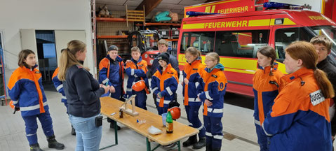 Im zweiten Teil der Übung zeigte Nicole Mayer eindrucksvolle Experimente rund ums Brennen und Löschen.