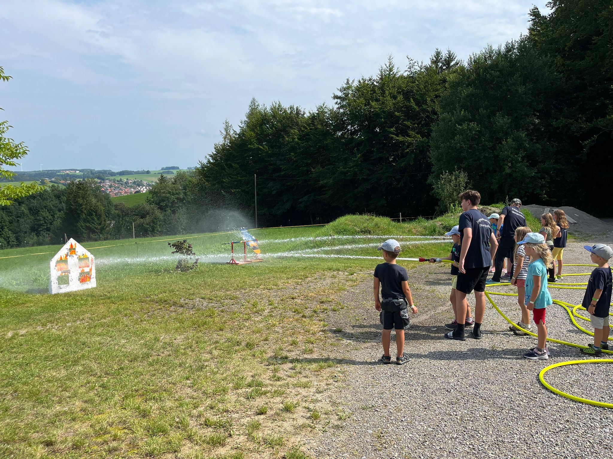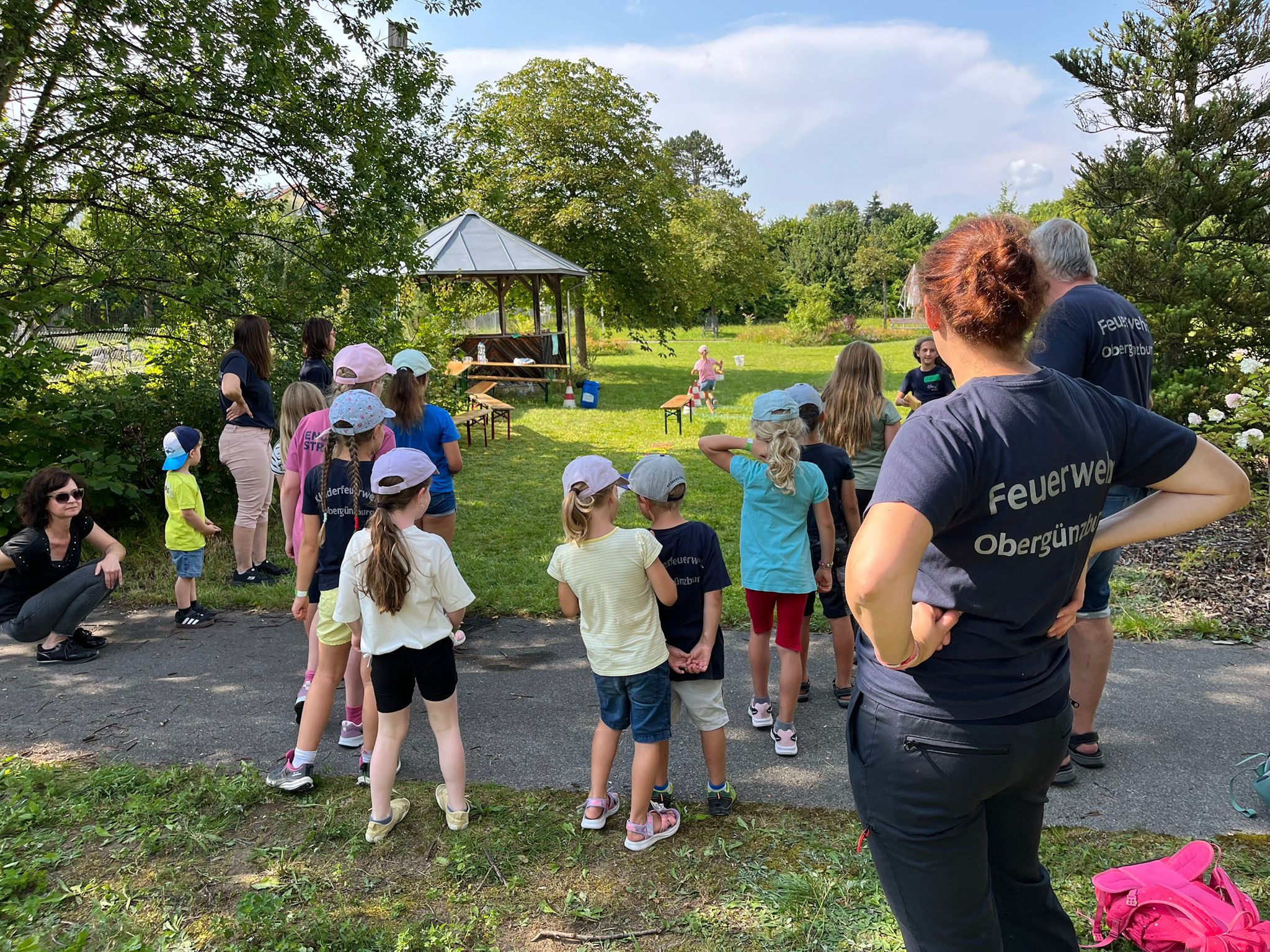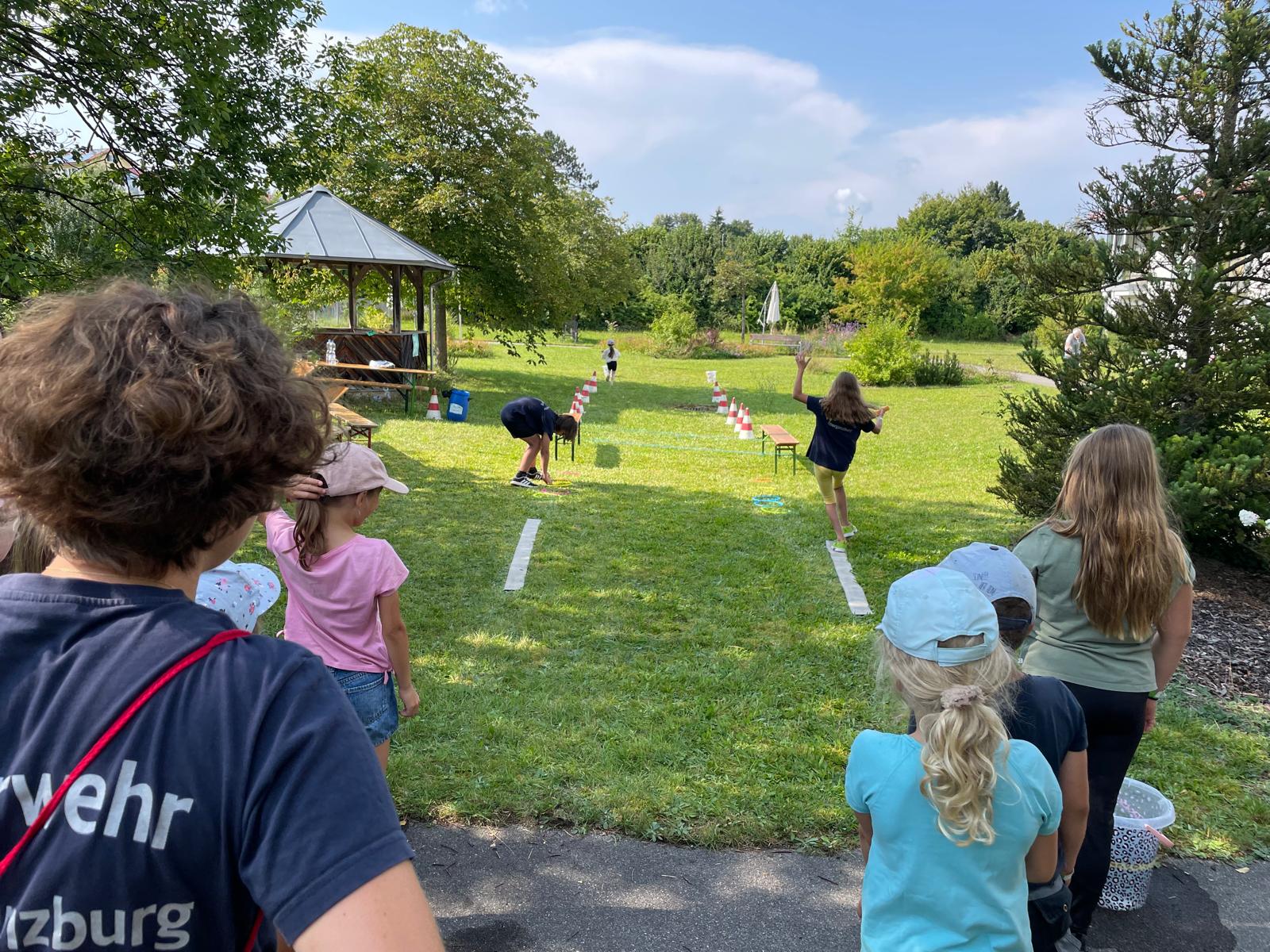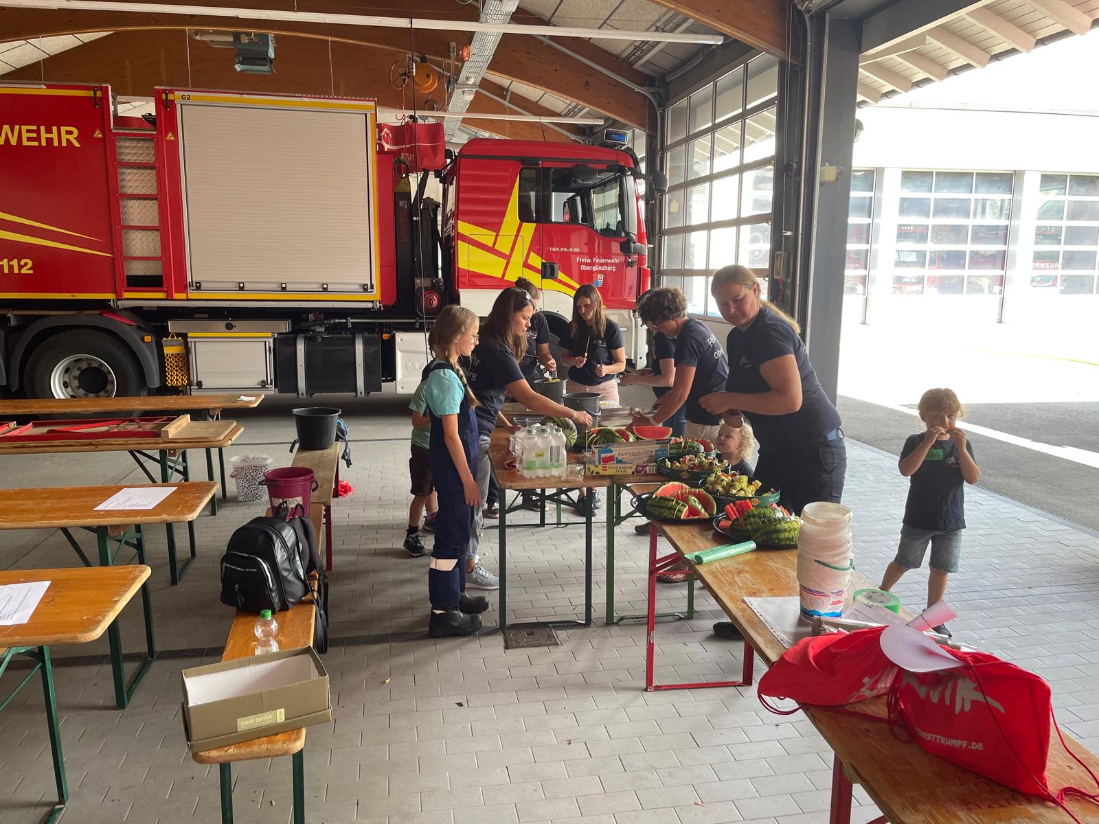 Am Samstag, den 16.08.2025 fand die alljährliche beliebte Ferienfreizeit der Feuerwehr Obergünzburg statt. Mehr als 70 Jugendliche und Kinder fanden sich am Gerätehaus ein, um mit Spiel und Spaß an dem Ferienprogramm teilzunehmen, welches von vielen Helfern der aktiven Wehr, sowie auch der Jugendfeuerwehr vorbereitet und durchgeführt wurde. Auch 2 Kameraden der SEK (Senioren-Einsatzkommando) waren dabei. An vier Stationen im Ortsgebiet von Obergünzburg galt es für die Teilnehmer, ihr Geschick bei zahlreichen Spielen unter Beweis zu stellen. Im Garten des Senioren- und Pflegeheims hatten hauch die Bewohner ihren Spaß an dem Hindernislauf der Kinder und belohnten mit viel Beifall. Natürlich durfte die obligatorische Fahrt im Löschfahrzeug nicht fehlen! Abschließend wartete im Gerätehaus gegrillte Würstchen im Semmel und Getränke für alle Teilnehmer und Helfer. Der krönende Abschluss war, wie jedes Jahr, die „Wasserschlacht“ im und um das Poolbecken mit Wasserfontäne aus dem Werfer des Wechselladerfahrzeugs.