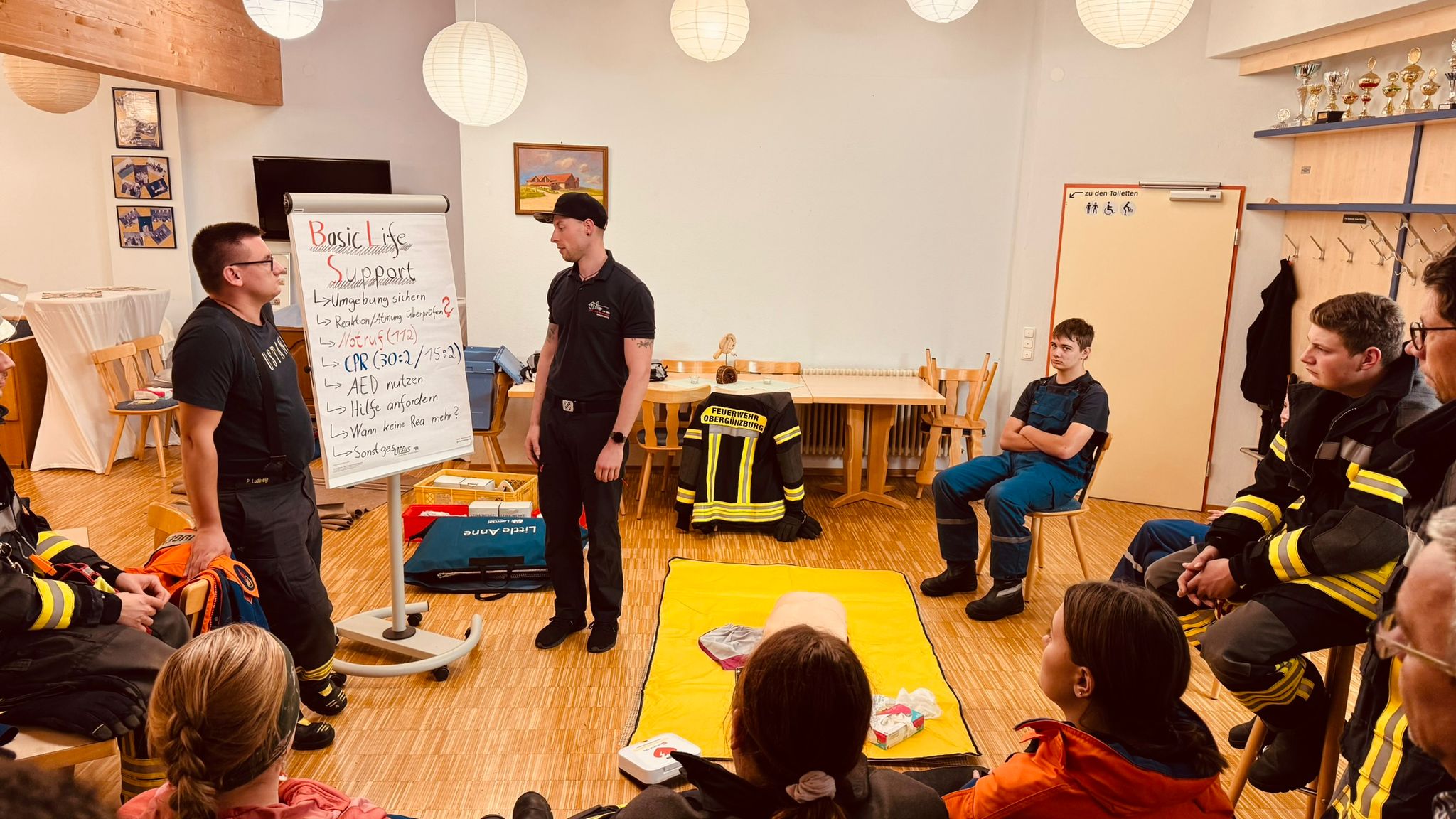 Da der neue Rettungssatz einige Änderungen mit sich bringt, bot der Fachbereich THL direkt eine praktische Übung an. So konnten alle Teilnehmenden das neue Gerät kennenlernen und erste Handgriffe trainieren – bevor es in den kommenden Wochen offiziell in Betrieb geht.