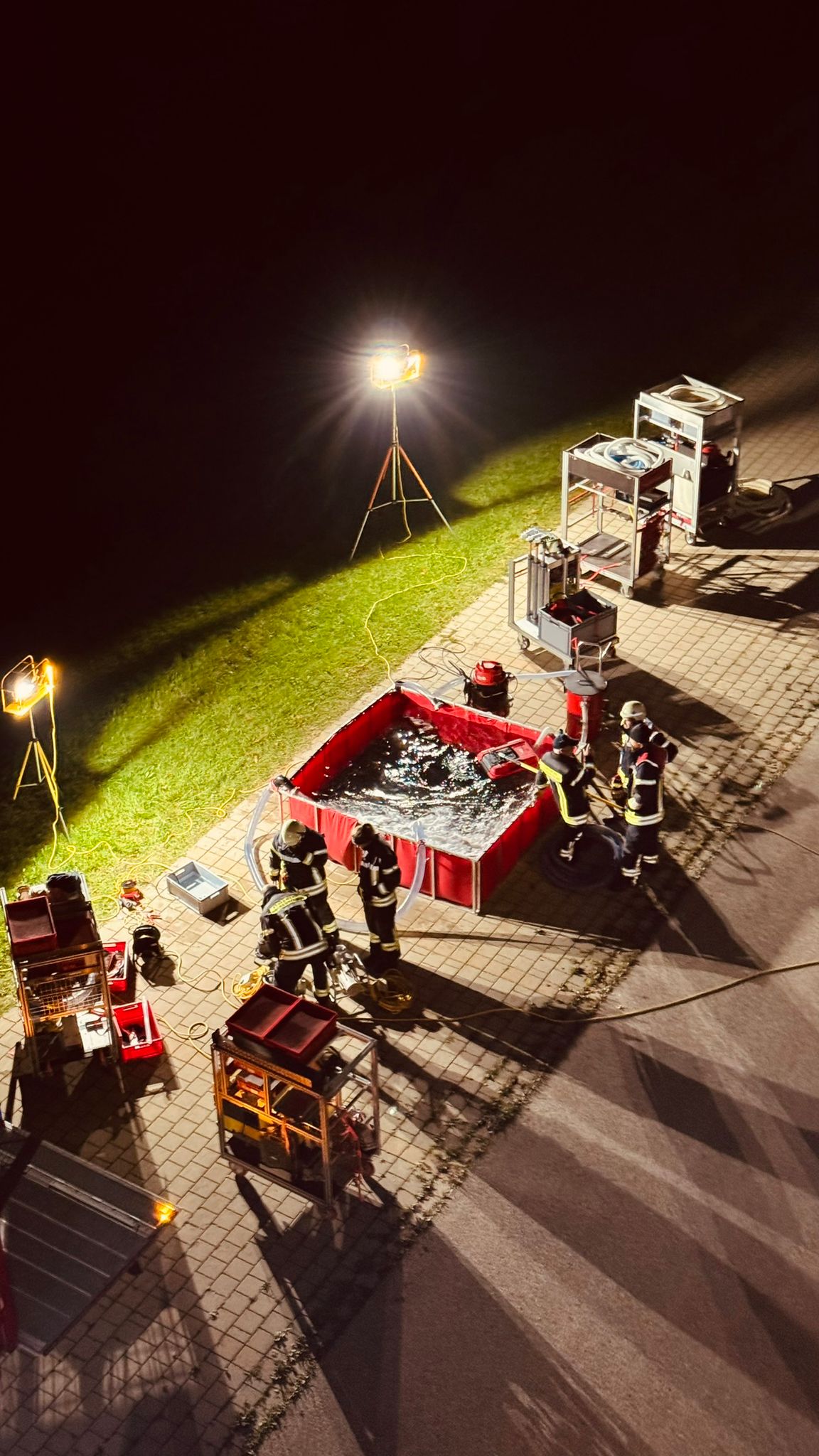Nach einer spannenden Gerätekunde zur Beleuchtungstechnik – von Stativleuchten bis zum Lichtmast – wurde praktisch geübt, wie man Einsatzstellen sicher und effektiv ausleuchtet.